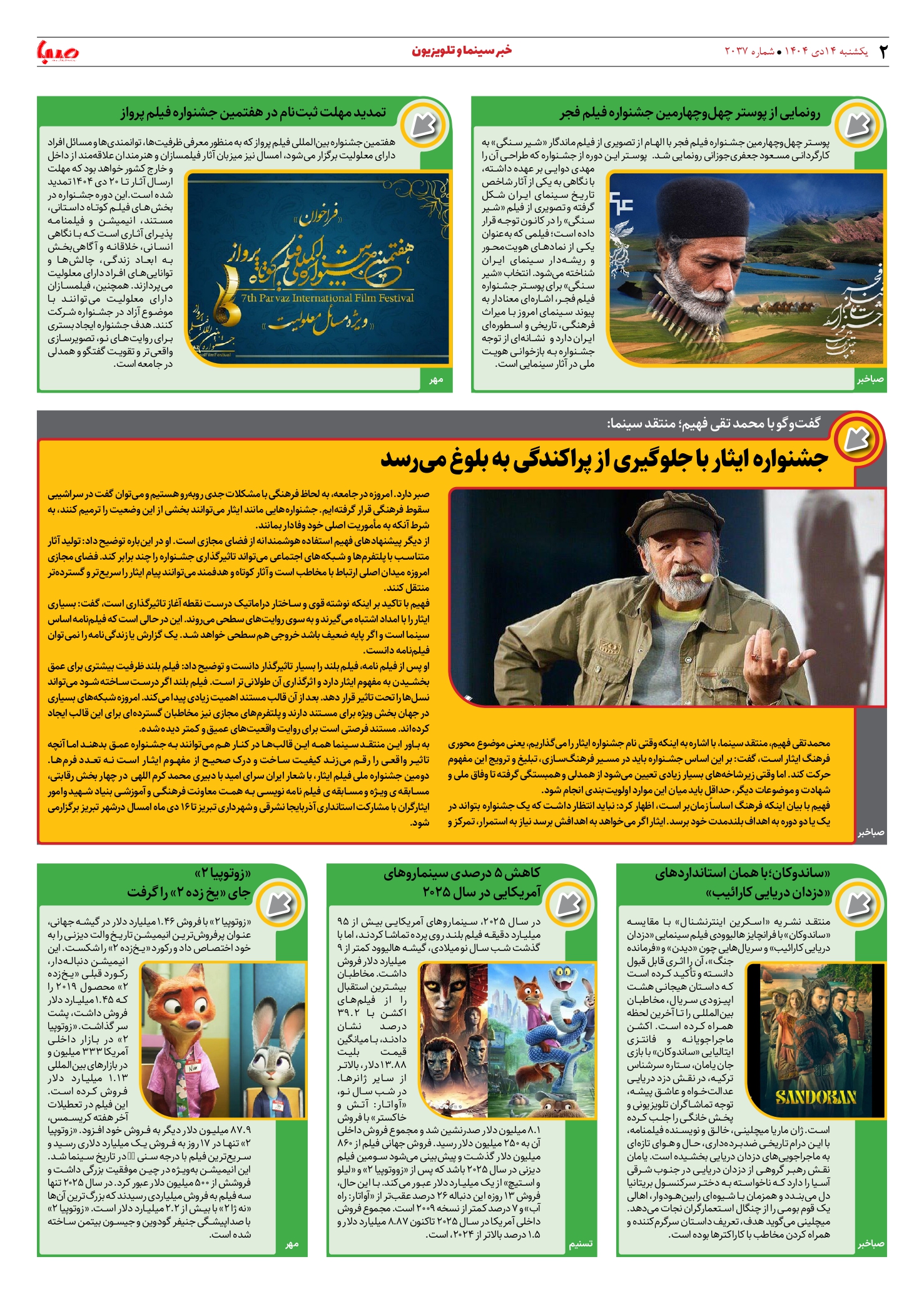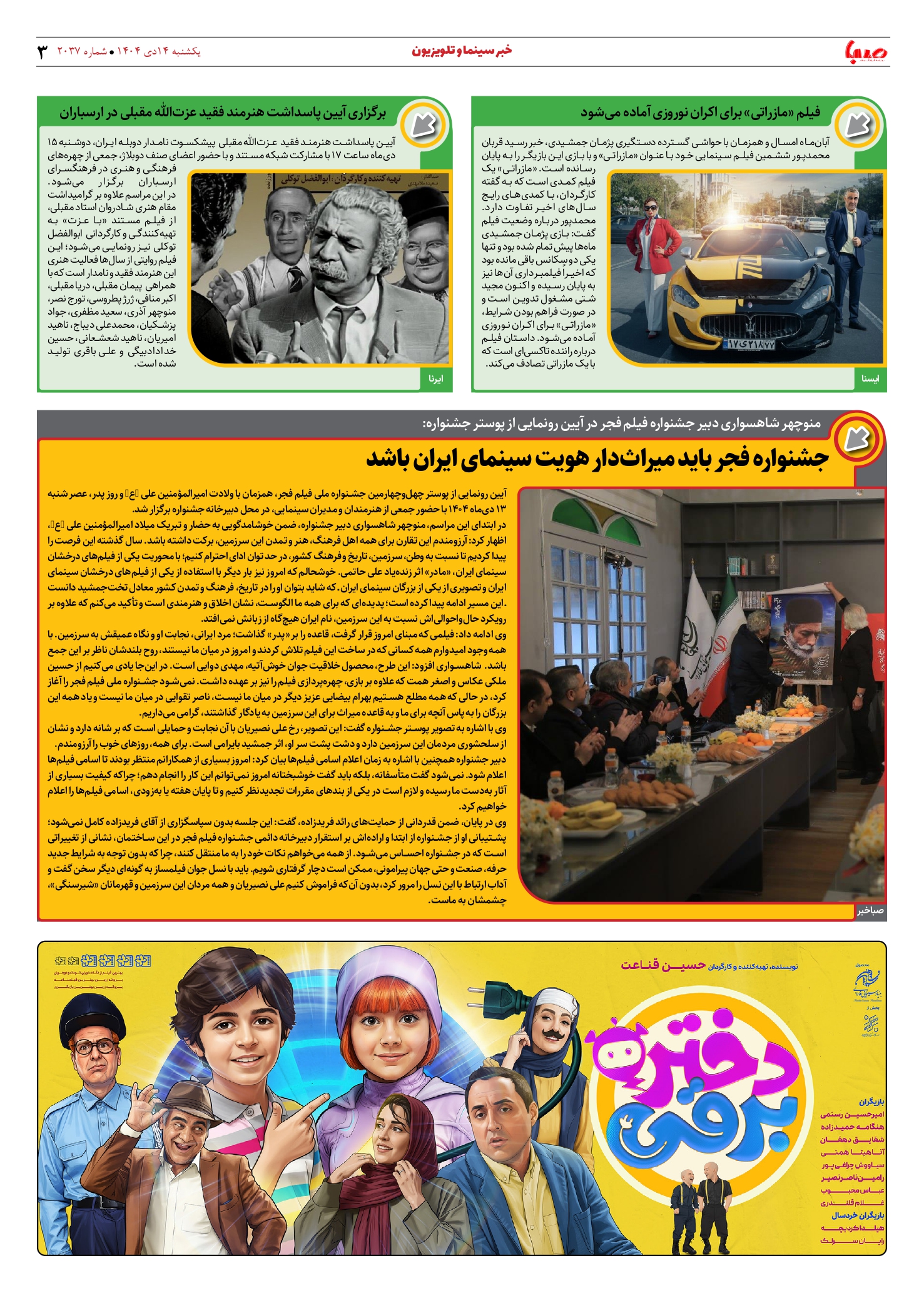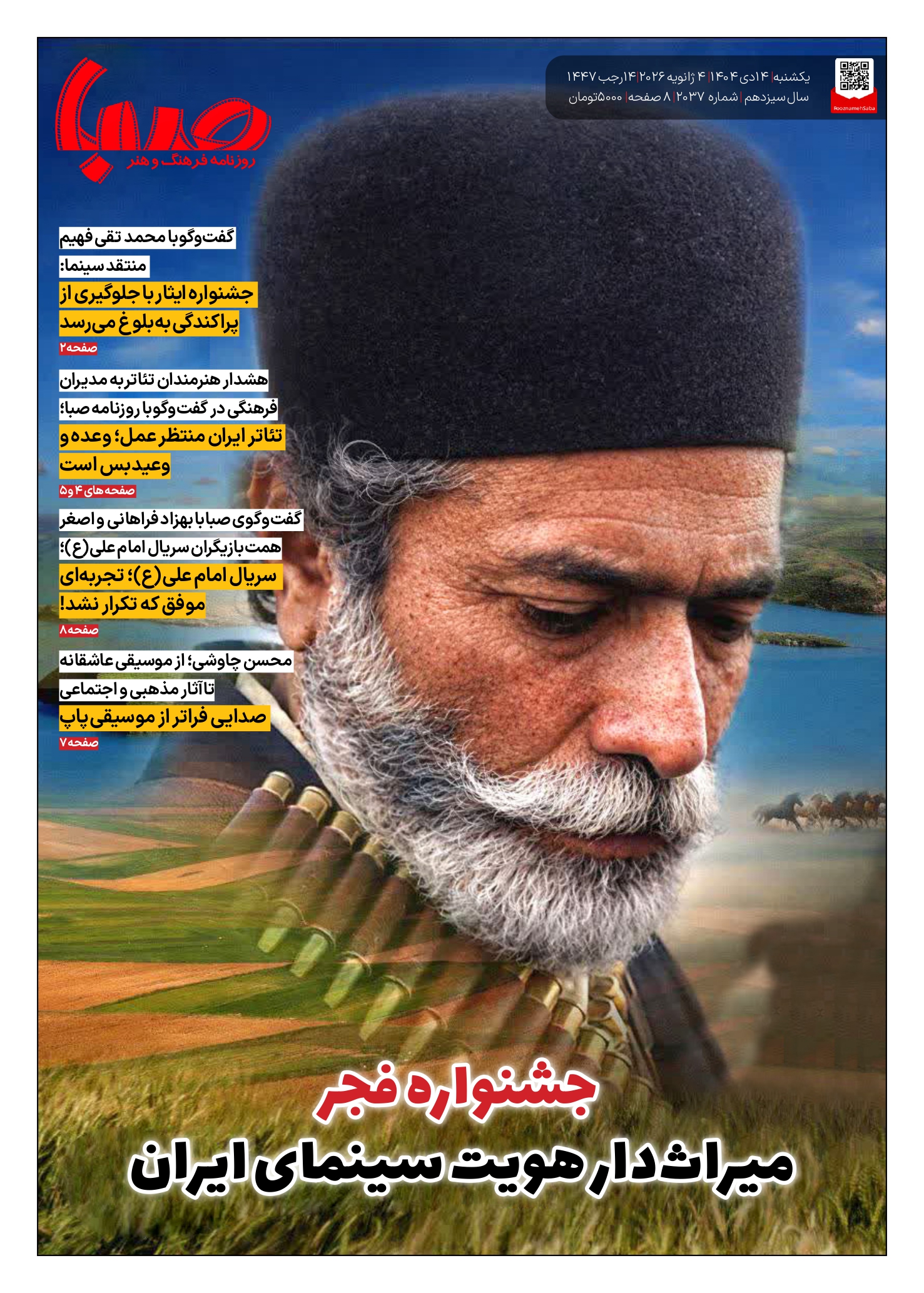 شماره 2037| روزنامه صبا یکشنبه 14 دی ۱۴۰۴