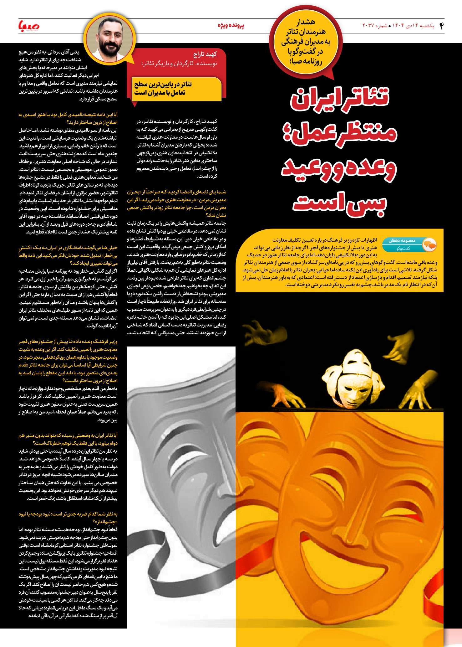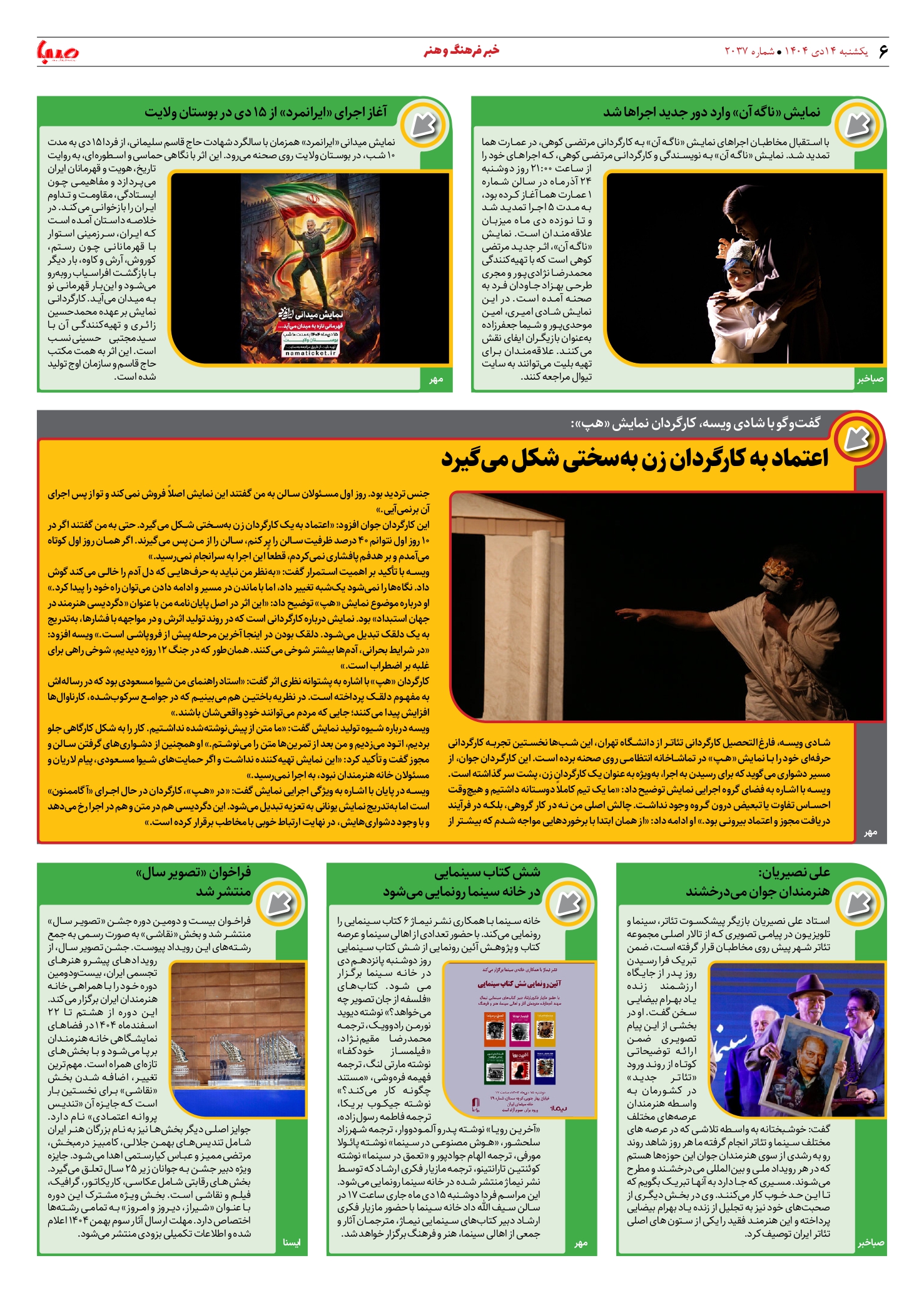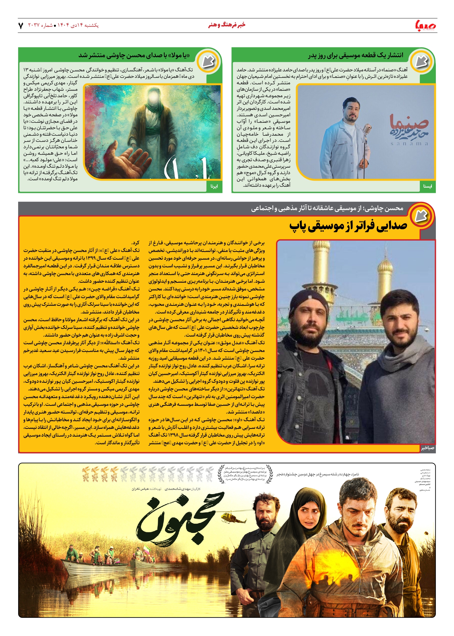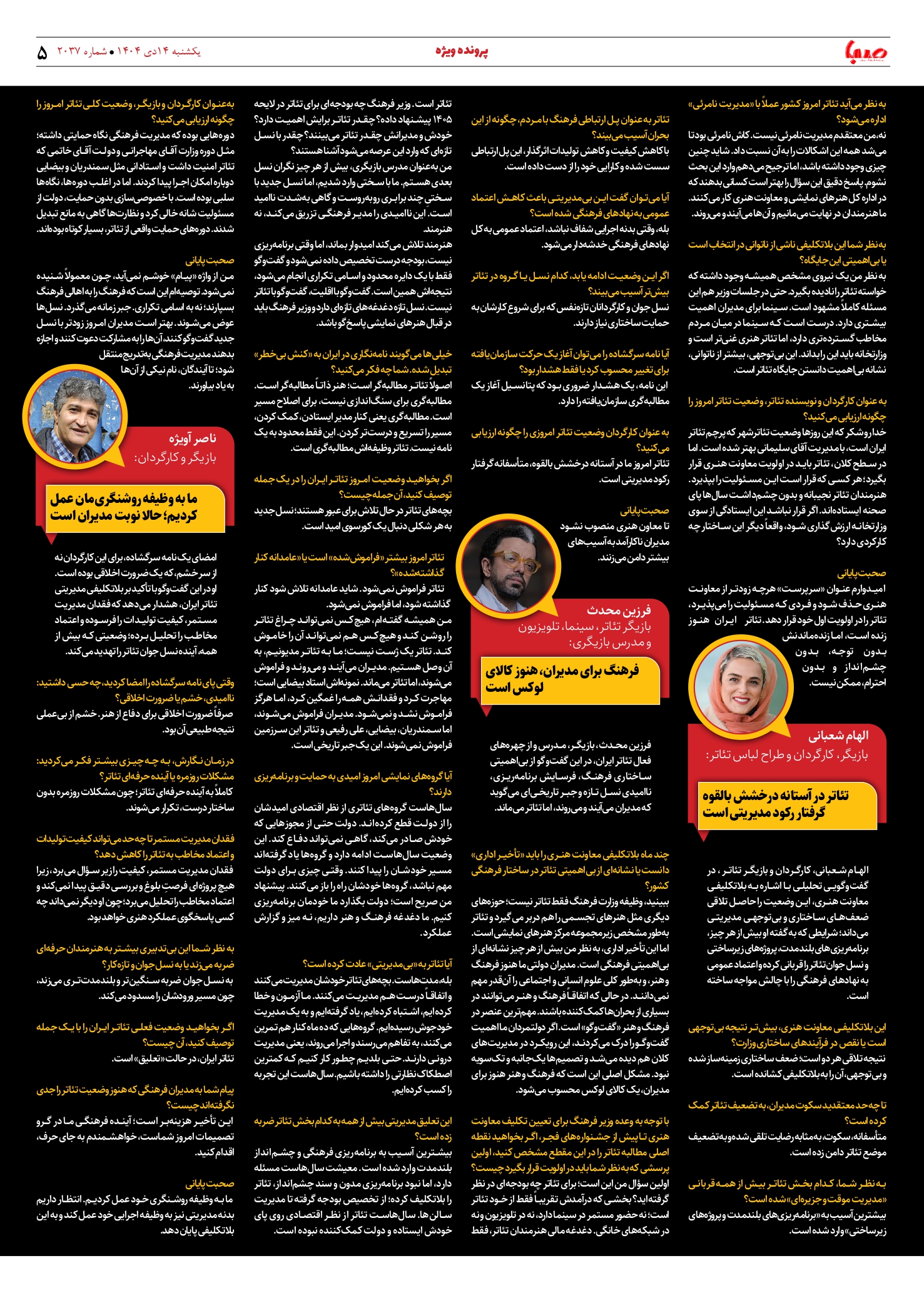 شماره 2037| روزنامه صبا یکشنبه 14 دی ۱۴۰۴