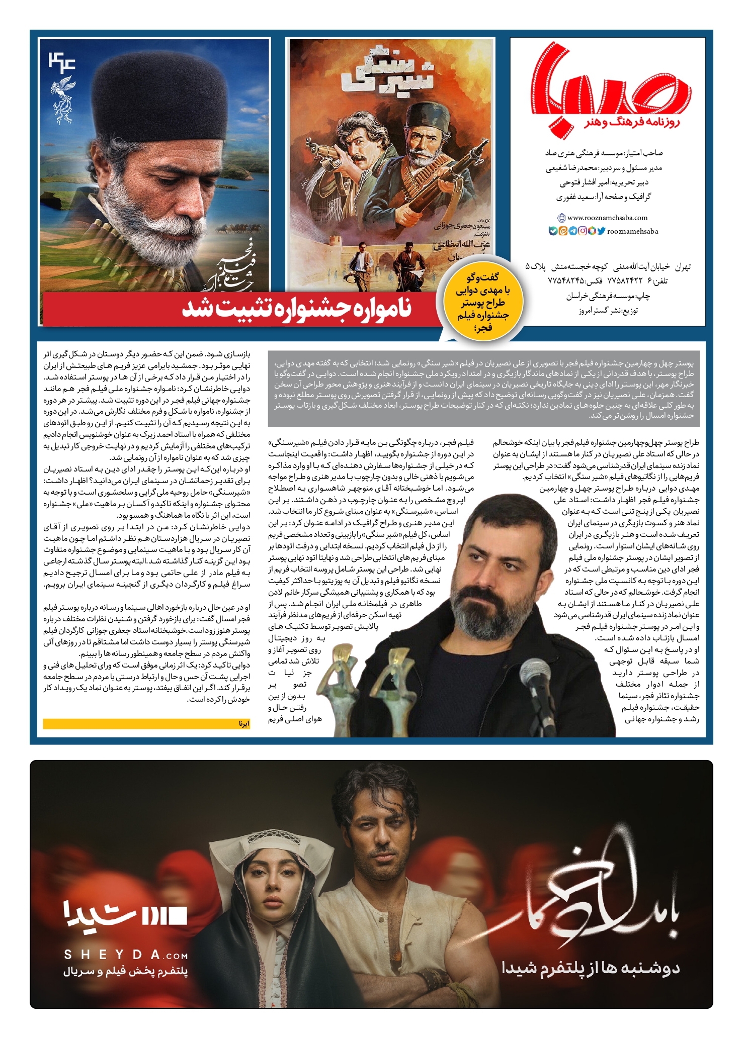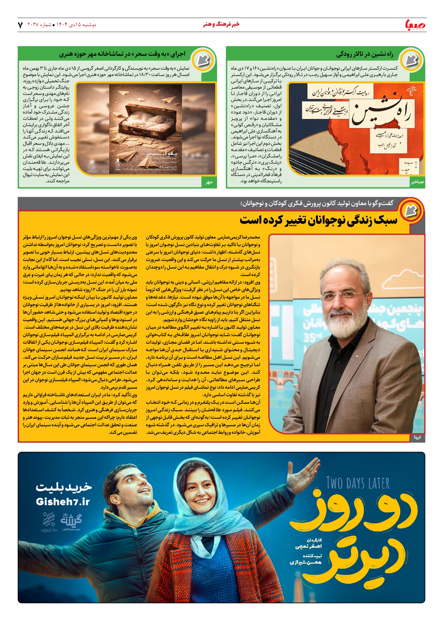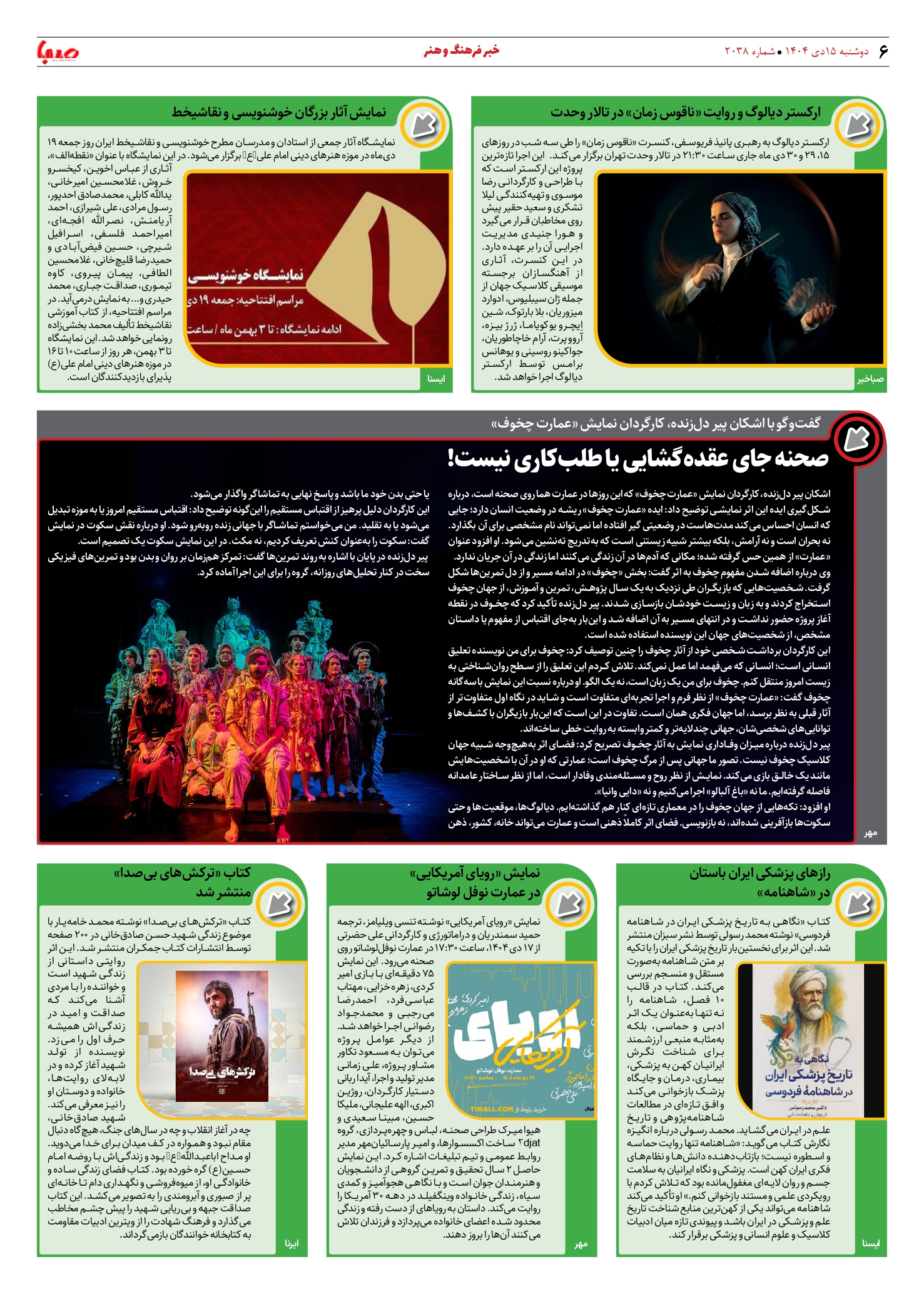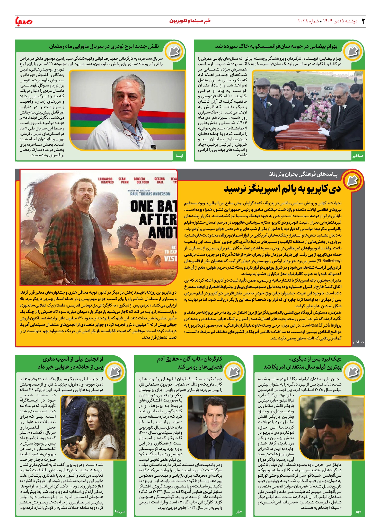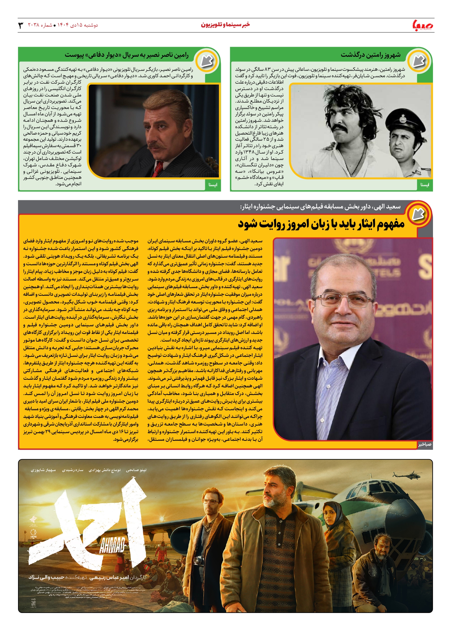 شماره 2038| روزنامه صبا دوشنبه 15 دی ۱۴۰۴
