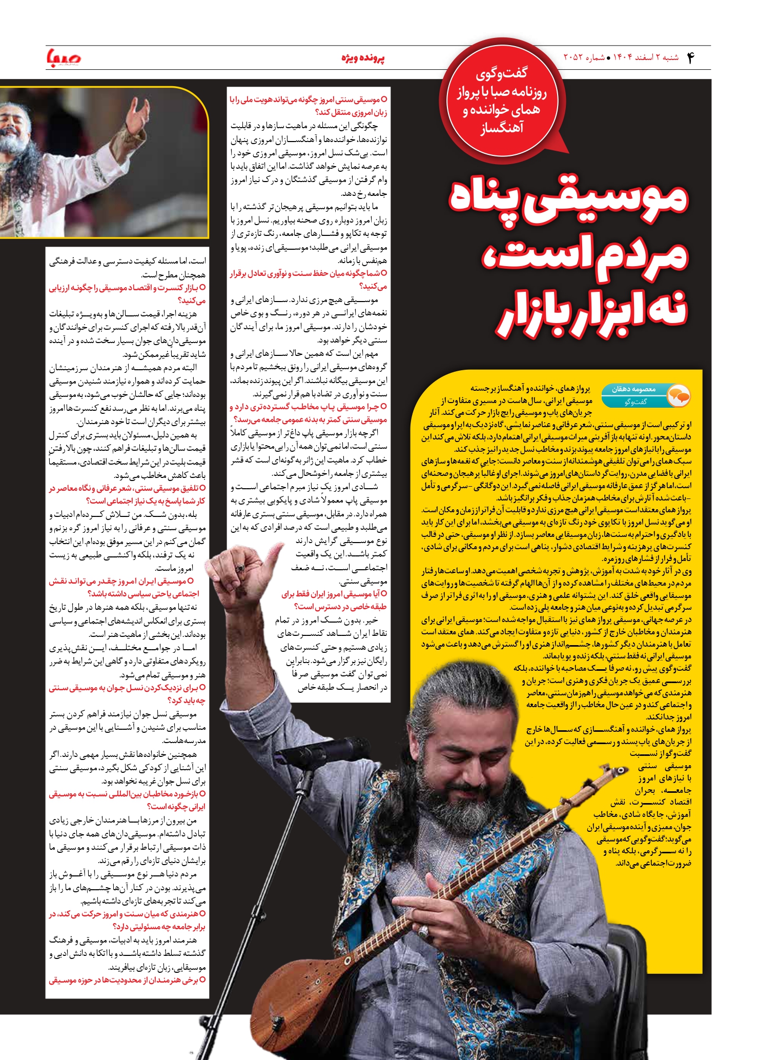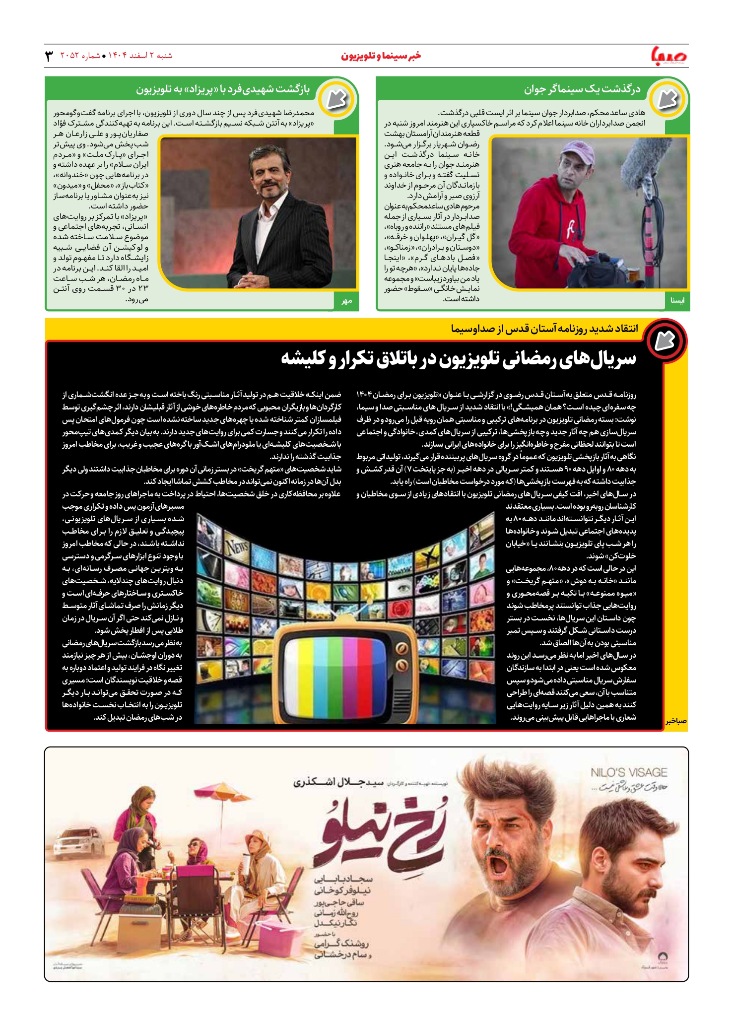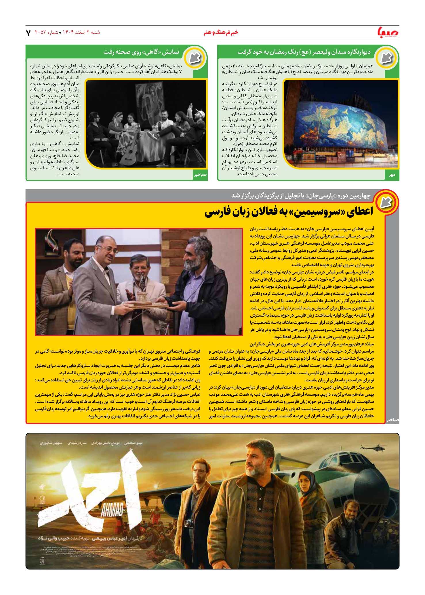 شماره 2052| روزنامه صبا شنبه 2 اسفند ۱۴۰۴