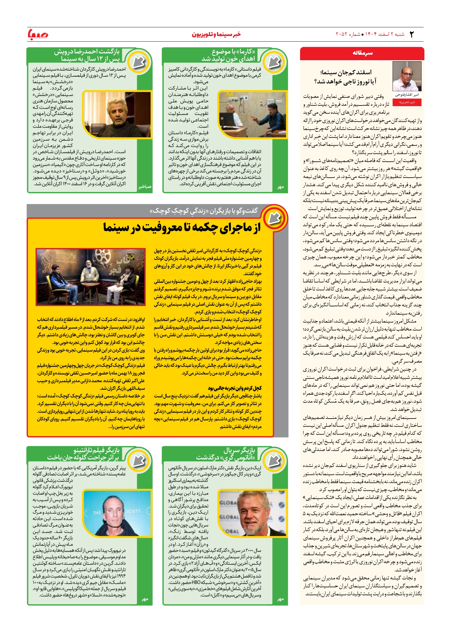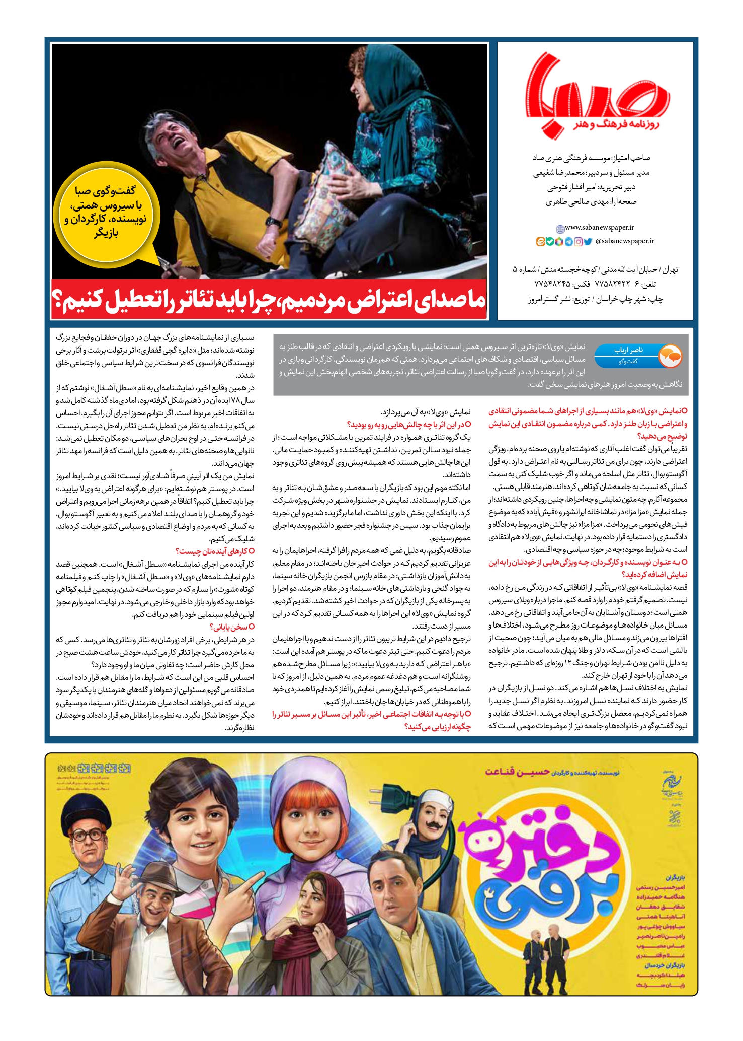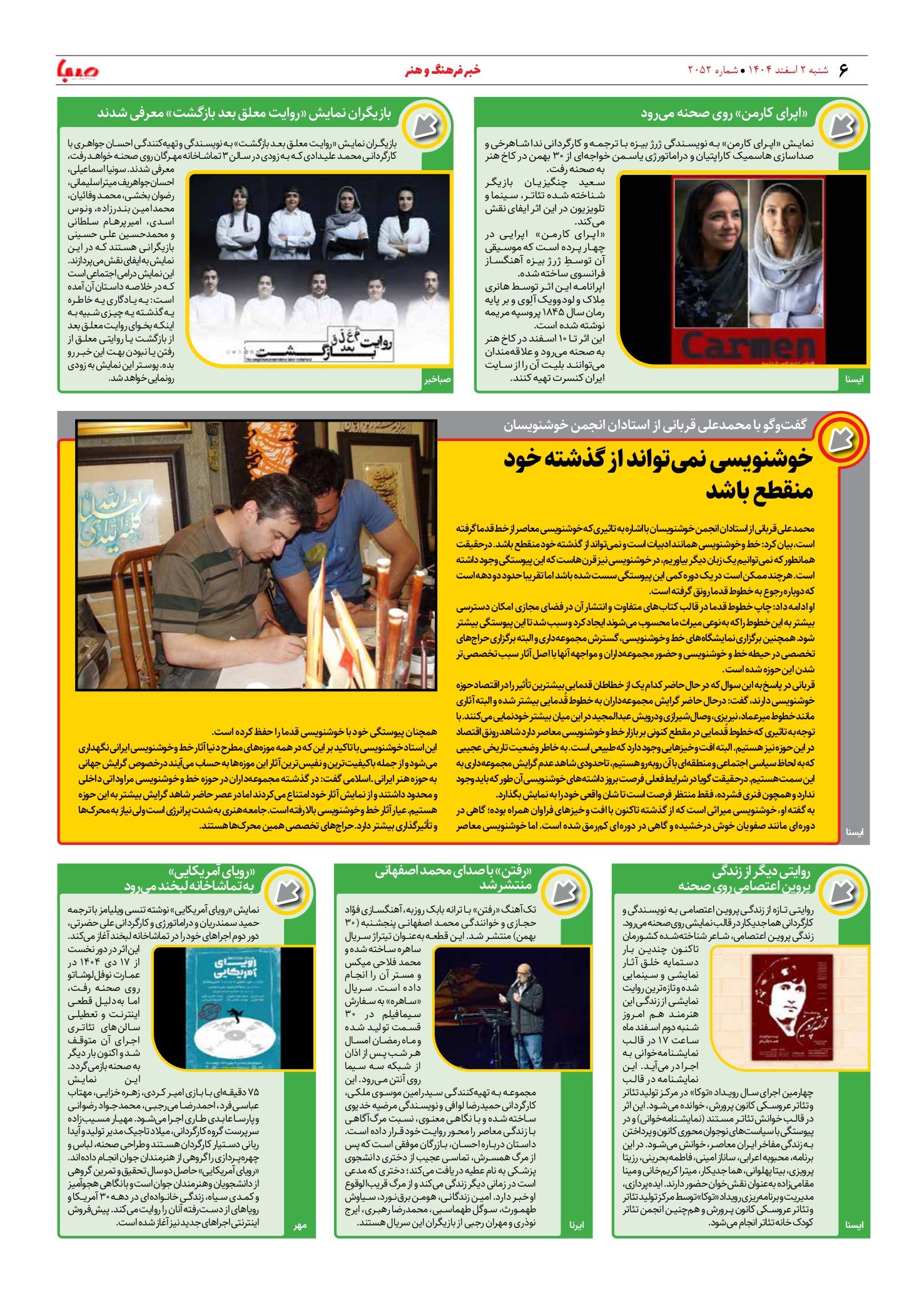 شماره 2052| روزنامه صبا شنبه 2 اسفند ۱۴۰۴